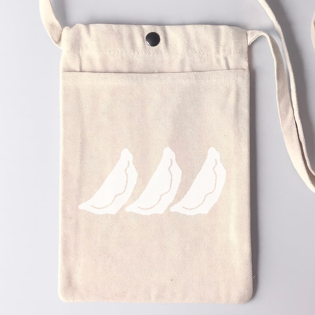コットン100%のキャンバス生地に、財布、鍵、スマホなどを収納できる丁度良いサイズ感、便利なフロントポケットも付いた機能的ディティール。