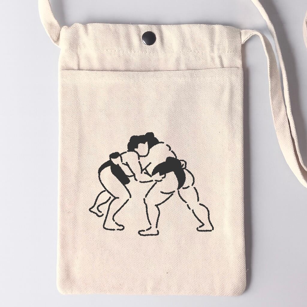 シュールなモチーフが存在感抜群の「相撲」の個性的なイラストが目を惹くデザインです。