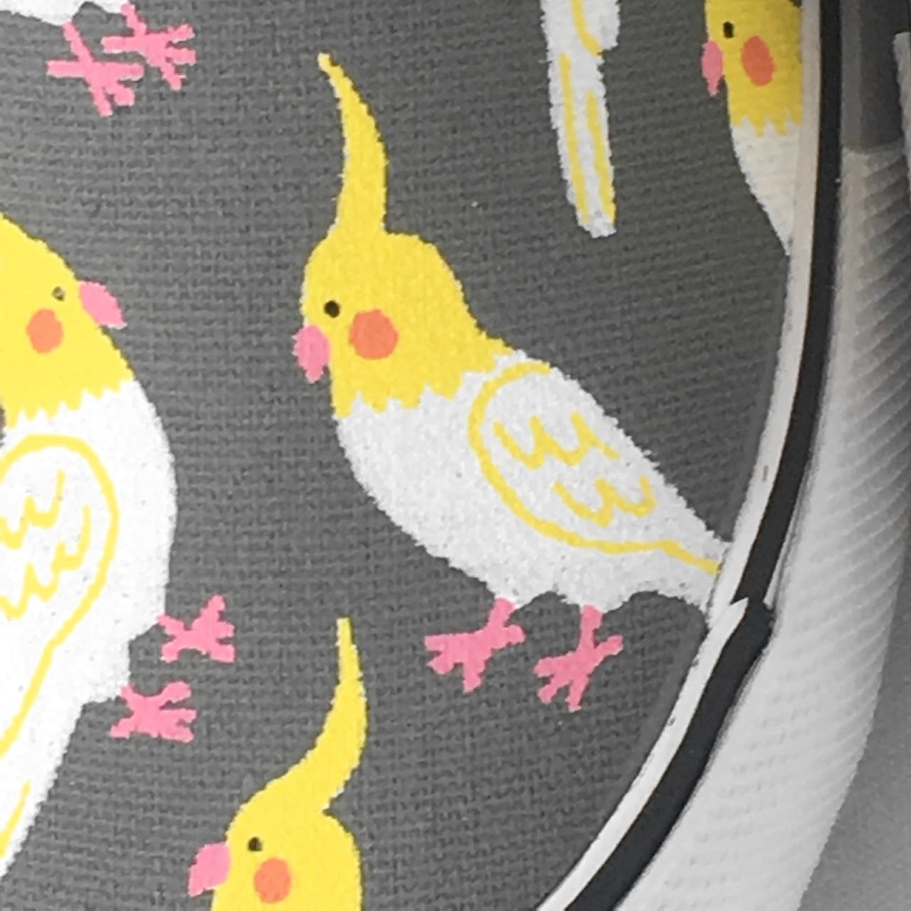 本作品は、チャコールグレーをベースにオカメインコのカラーがアクセントになったデザインです。