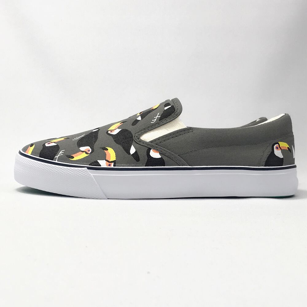 キャンバススリッポンに、手描きで『オニオオハシ柄』をペイントした【LACICO(ラシコ)】のオリジナルハンドペイント作品です。