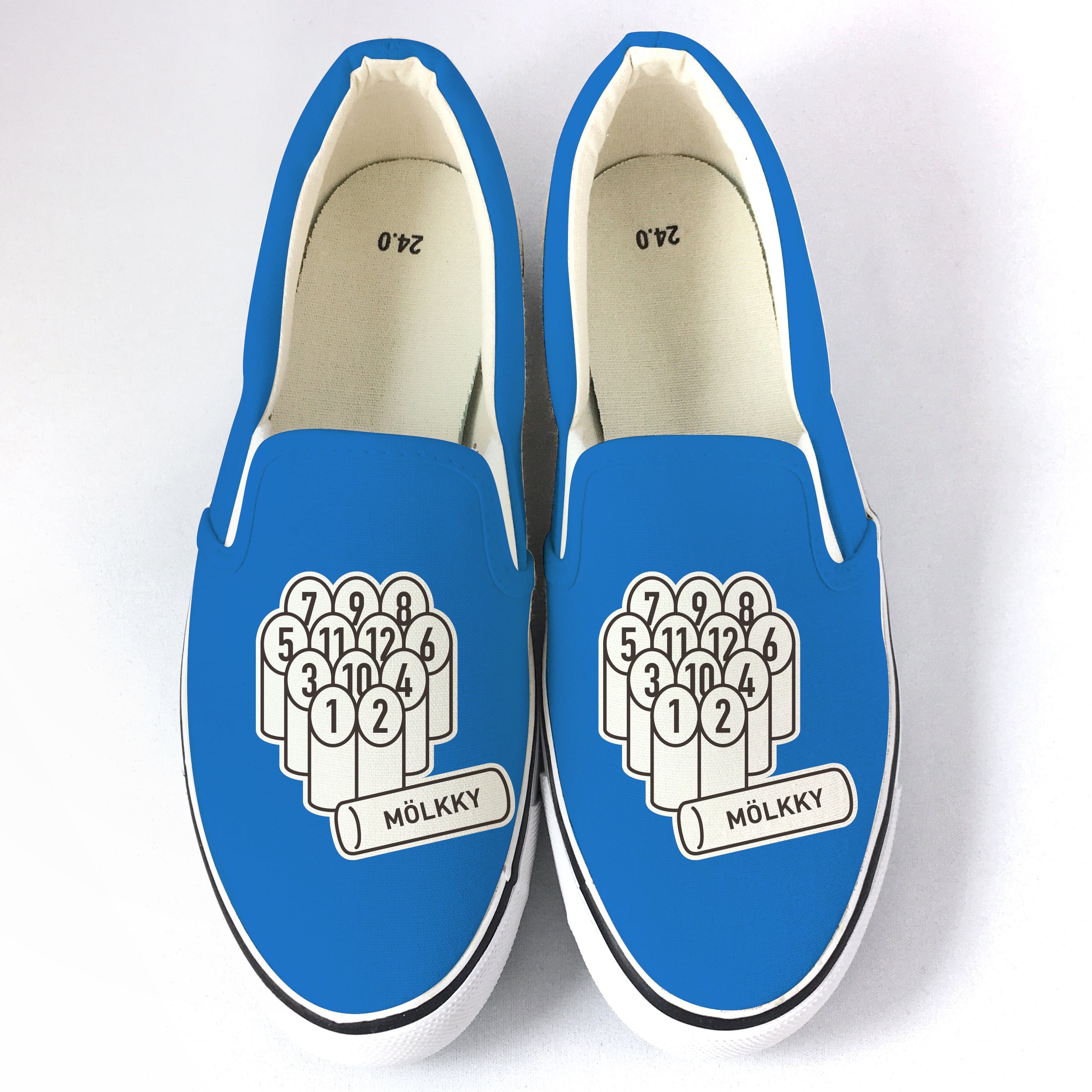 フィンランドのスポーツ『Mölkky(モルック)』柄をスリッポンにハンドペイントしたLACICO(ラシコ)のオリジナル作品です。