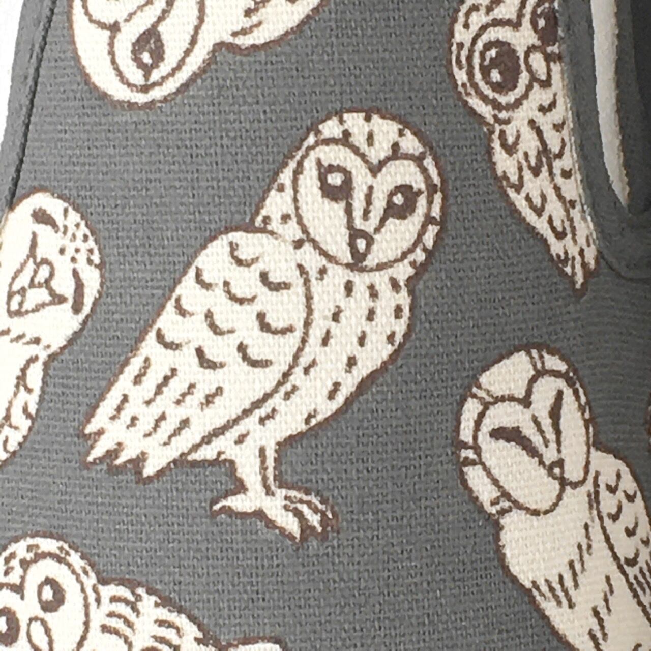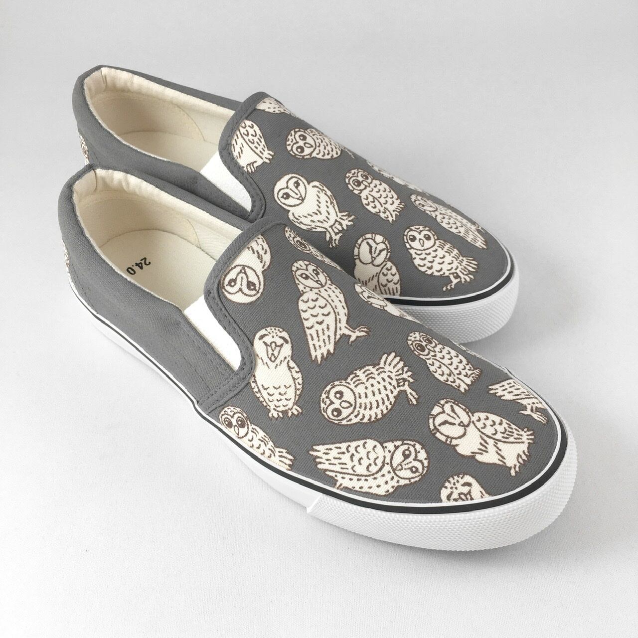 キャンバススリッポンに、手描きで『メンフクロウ柄』をペイントしたLACICOオリジナルハンドペイント作品です。