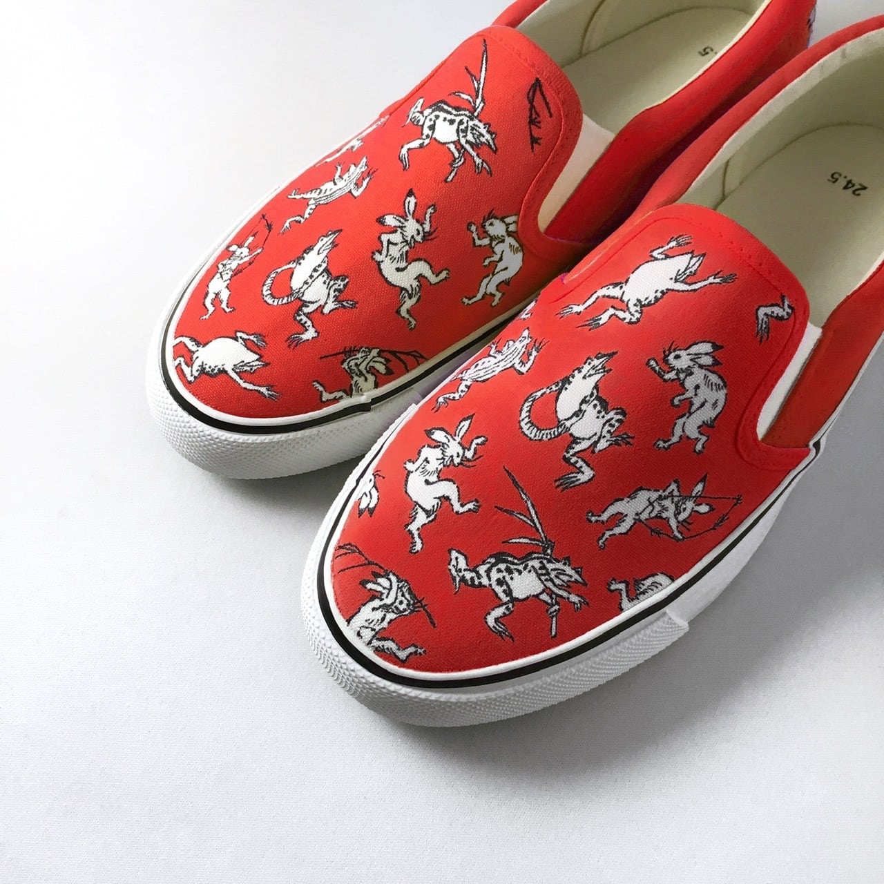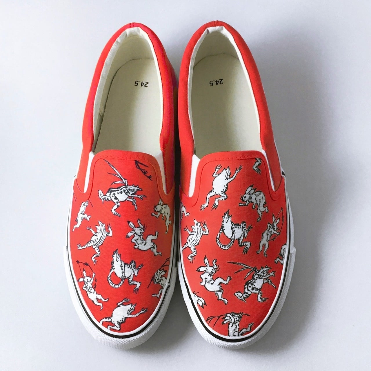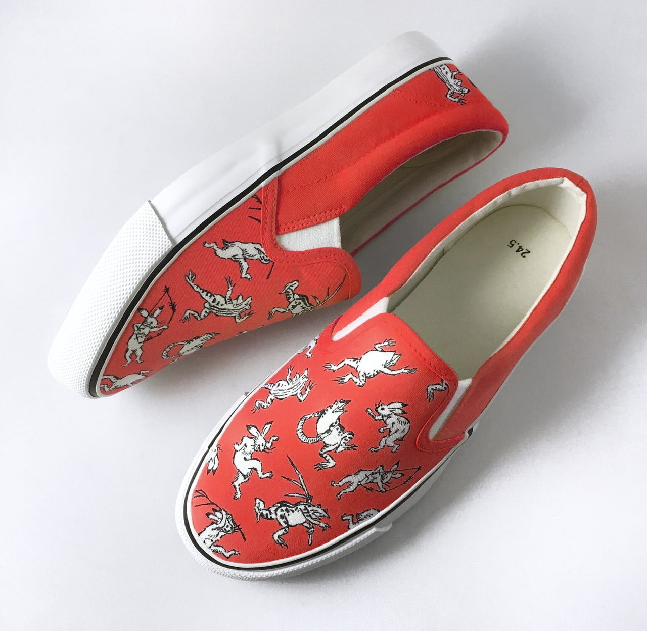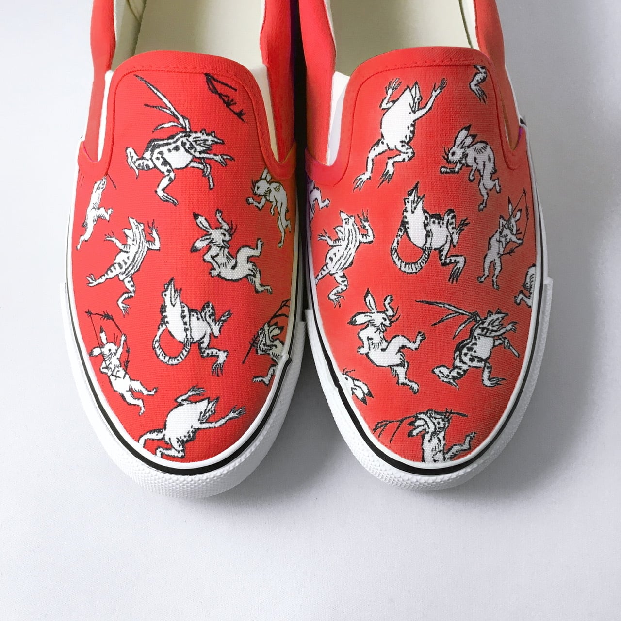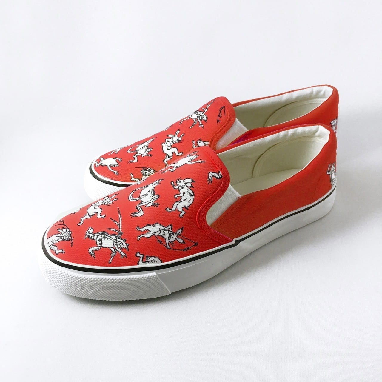 LACICO 鳥獣戯画スリッポン (レッド) ※ひも靴に変更可【VANSスリッポンで制作】